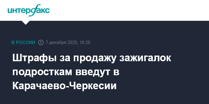 "В частности, планируется внести изменения в Закон КЧР "Об административных правонарушениях", дополнив его статьей, устанавливающей ответственность за нарушение ограничения продажи несовершеннолетним товаров, содержащих сжиженный углеводородный газ - зажигалок, в которых есть контейнер со сжиженным углеводородным газом, а также заправочных баллонов с этим газом", - сказал сотрудник парламента КЧР.