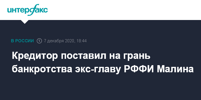 Кредитор поставил на грань банкротства экс-главу РФФИ Малина