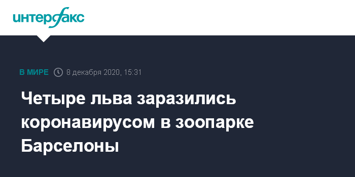 Москва. 8 декабря. INTERFAX.RU - Власти Испании расследуют четыре случая заражения коронавирусом среди львов в зоопарке Барселоны, пишет газета El Pais.