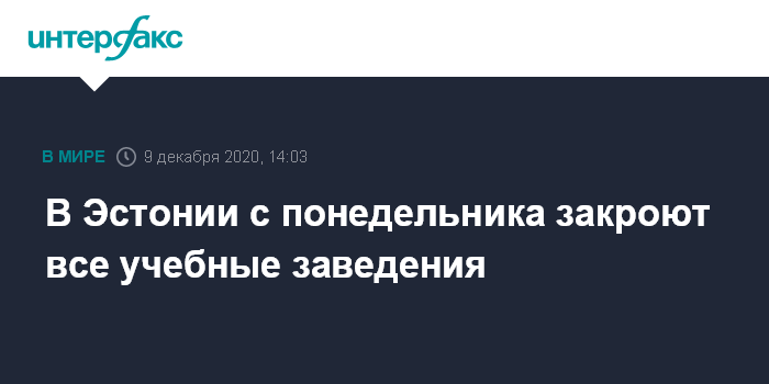 Москва. 9 декабря. INTERFAX.RU - Правительство Эстонии для предотвращения распространения коронавируса со следующей недели вводит дополнительные ограничения в области образования и спорта по всей стране, сообщил в среду сайт rus.postimees.