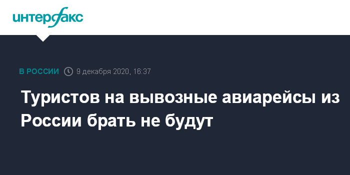 В Росавиации напомнили, что вывозные рейсы не предназначены для туристических поездок. "Эти рейсы предназначены исключительно для вывоза иностранных граждан за пределы РФ и возвращения на родину россиян, застигнутых пандемией за границей", - сказали в ведомстве.