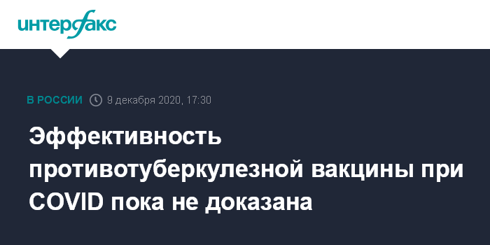 Москва. 9 декабря. INTERFAX.RU - В мире проводится полтора десятка исследований эффективности противотуберкулезной вакцины БЦЖ от COVID-19, но результатов пока нет, сообщил директор Петербургского НИИ эпидемиологии и микробиологии им. Пастера Арег Тотолян.