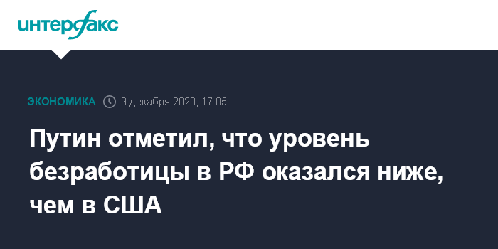 Путин отметил, что уровень безработицы в РФ оказался ниже, чем в США