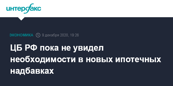 ЦБ РФ пока не увидел необходимости в новых ипотечных надбавках