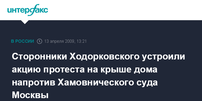 Сторонники Ходорковского устроили акцию протеста на крыше дома напротив Хамовнического суда Москвы