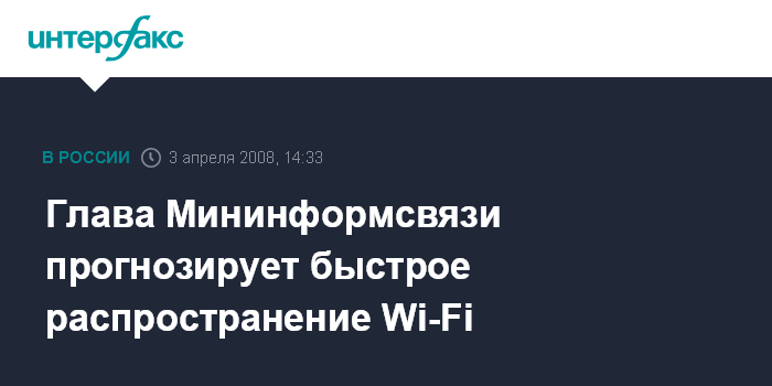 Глава Мининформсвязи прогнозирует быстрое распространение Wi-Fi