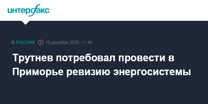 Москва. 10 декабря. INTERFAX.RU - Энергосистема Приморского края нуждается в ревизии после ноябрьского ледяного дождя и массовых отключений, сказал вице-премьер, полномочный представитель президента РФ в Дальневосточном федеральном округе Юрий Трутнев на совещании во Владивостоке.