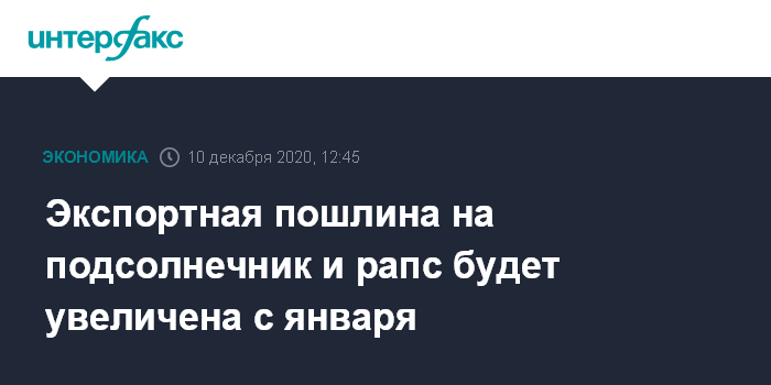Как сообщалось, с предложением о введении новых ограничительных мер на экспорт масличных культур выступил Масложировой союз России, заявивший о том, что российские сельхозпроизводители приостановили продажи подсолнечника в ожидании роста цен. Это стало следствием того, что Турция обнулила импортную пошлину на подсолнечник. Нулевая пошлина будет действовать в этой стране до 30 июня 2021 года.