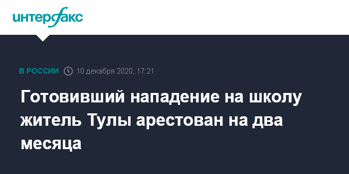 Накануне, 9 декабря, ФСБ России объявила о задержании в Туле молодого человека, планировавшего нападение с ружьем на школу.