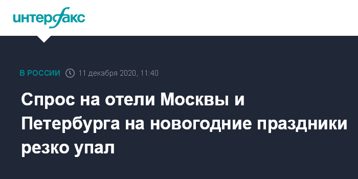 Общий объем потраченных за этот период средств составил около 600 млн рублей. Там уточнили, что на бронирование московских гостиниц будущие гости столицы потратили около 150 млн рублей, что на 45% меньше, чем годом ранее. При этом на 34% - до 136 млн рублей - снизилась к прошлому году выручка отелей в Санкт-Петербурге, где на период новогодних каникул вводятся строгие ограничения на работу заведений общепита и учреждений культуры.