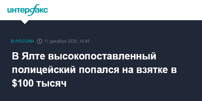 "Посредник получил $100 тысяч (что составило по курсу Центрального банка России свыше 7,7 млн рублей) и передал их врио замначальника следственного отдела УМВД России по Ялте. Подозреваемые были задержаны сотрудниками УФСБ", - отметила Постнова.