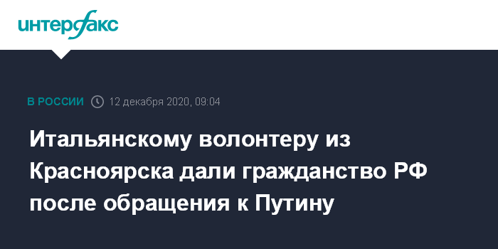 Итальянскому волонтеру из Красноярска дали гражданство РФ после обращения к Путину