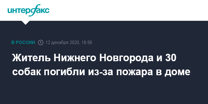 Москва. 12 декабря. INTERFAX.RU - Пожар в Ленинском районе Нижнего Новгорода в субботу унес жизнь местного жителя, также в огне погибли три десятка собак.
