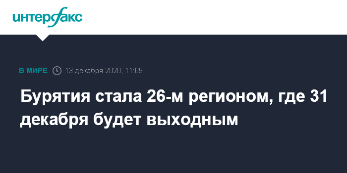 Бурятия стала 26-м регионом, где 31 декабря будет выходным