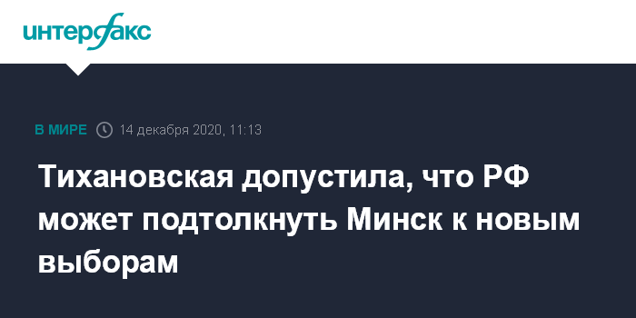 Тихановская допустила, что РФ может подтолкнуть Минск к новым выборам
