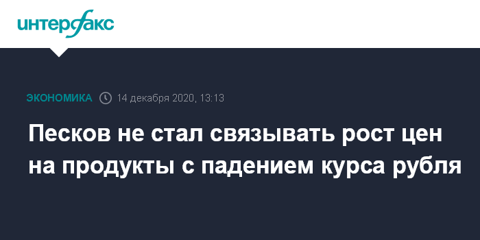 "Главным образом, не связаны", - сказал пресс-секретарь президента РФ Дмитрий Песков журналистам, отвечая на вопрос, связывают ли в Кремле падение курса рубля и рост цен на продукты.