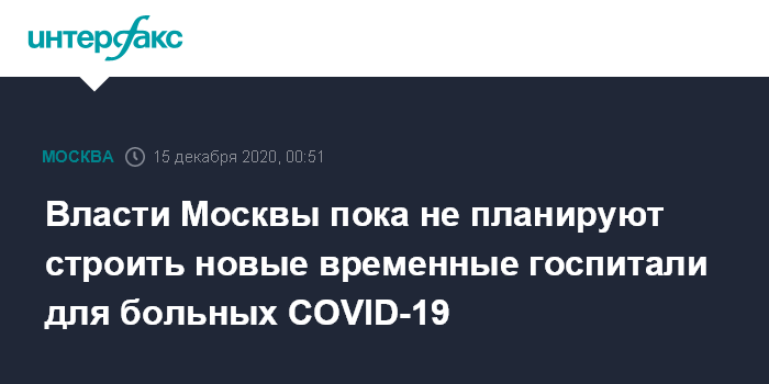 Москва. 14 декабря. INTERFAX.RU - Созданных в столице временных госпиталей и модулей для лечения заболевших коронавирусом пока достаточно, заявил заместитель мэра Москвы Петр Бирюков в понедельник в интервью телеканалу "Россия 24".