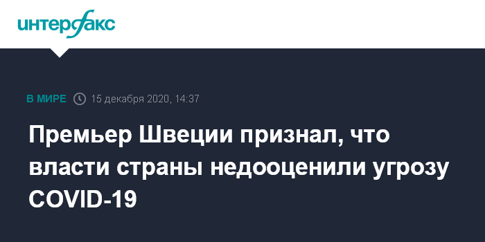 Москва. 15 декабря. INTERFAX.RU - Органы здравоохранения Швеции недооценили угрозу для страны новой волны коронавируса COVID-19, заявил шведский премьер-министр Стефан Лёвен.