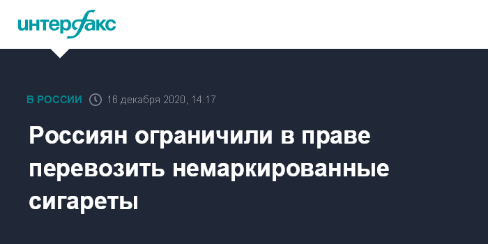Москва. 16 декабря. INTERFAX.RU - Госдума приняла в третьем чтении законопроект об ограничении для физлиц на перевозку табачной продукции, не маркированной российскими акцизными марками, из стран дальнего зарубежья и стран ЕАЭС.
