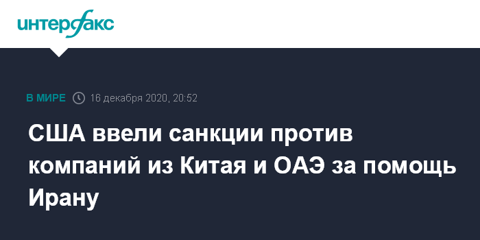 США ввели санкции против компаний из Китая и ОАЭ за помощь Ирану