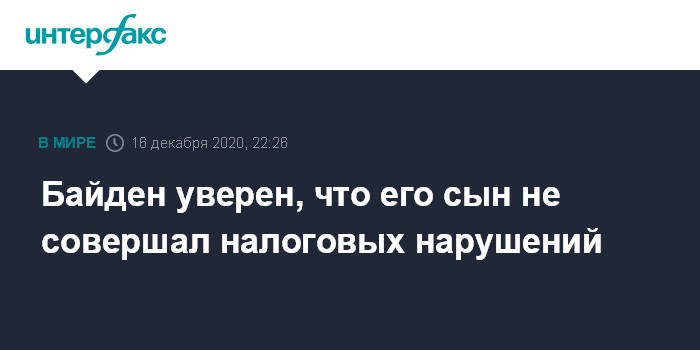 Москва. 16 декабря. INTERFAX.RU - Избранный президент США Джо Байден выразил уверенность в том, что его сын Хантер, подозреваемый в нарушениях при уплате налогов, не делал ничего незаконного, сообщает издание The Hill.