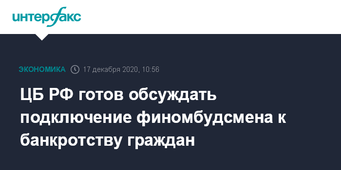 ЦБ РФ готов обсуждать подключение финомбудсмена к банкротству граждан