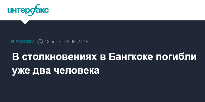 Бангкок/Лондон. 13 апреля. INTERFAX.RU - Два человека погибли в столкновениях правительственных войск с демонстрантами в понедельник в центре Бангкока, еще 101 человек ранен, сообщает британский телеканал Sky News.
