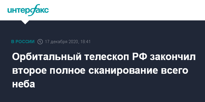 Орбитальный телескоп РФ закончил второе полное сканирование всего неба