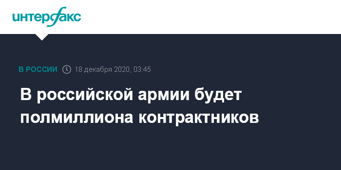 По словам Панкова, за восемь лет численность данной категории военнослужащих выросла более чем в два раза. По итогам 2020 года количество военнослужащих-контрактников увеличилось на 30 тысяч человек. На сегодня их почти в два раза больше, чем призывников.