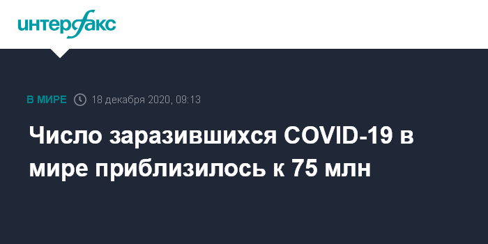 Число заразившихся COVID-19 в мире приблизилось к 75 млн