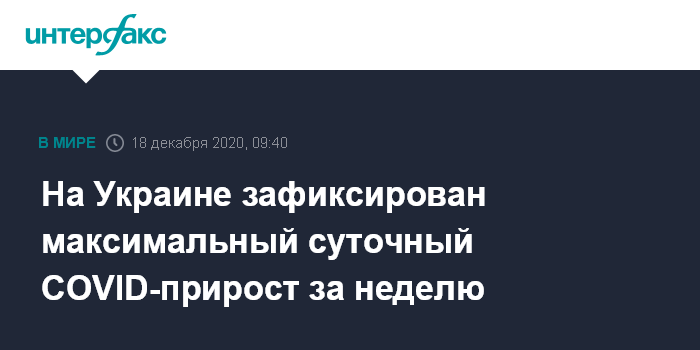 Москва. 18 декабря. INTERFAX.RU - На Украине по состоянию на утро пятницы зафиксировано 12 630 новых случаев заболевания COVID-19 (максимальный прирост за неделю), выздоровевших - 12 866 человек, умерли 260 пациентов, сообщил министр здравоохранения страны Максим Степанов.