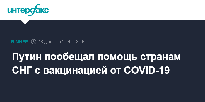 Путин пообещал помощь странам СНГ с вакцинацией от COVID-19