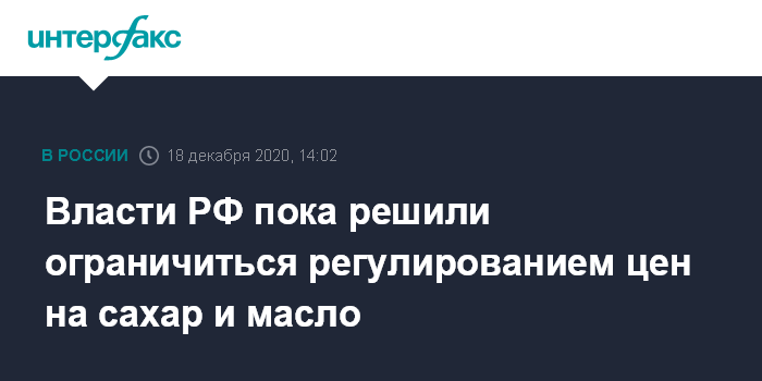 Власти РФ пока решили ограничиться регулированием цен на сахар и масло