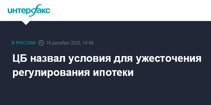 ЦБ назвал условия для ужесточения регулирования ипотеки