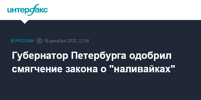 Как сообщалось, 23 июля Беглов подписал закон, запрещающий продажу алкогольной продукции в барах и кафе с залами площадью менее 50 кв. м с датой вступления с 1 января 2021 года. После волны возмущения со стороны предпринимателей власти создали рабочую группу по урегулированию ситуации, автор законопроекта депутат Денис Четырбок предложил смягчение ограничений.