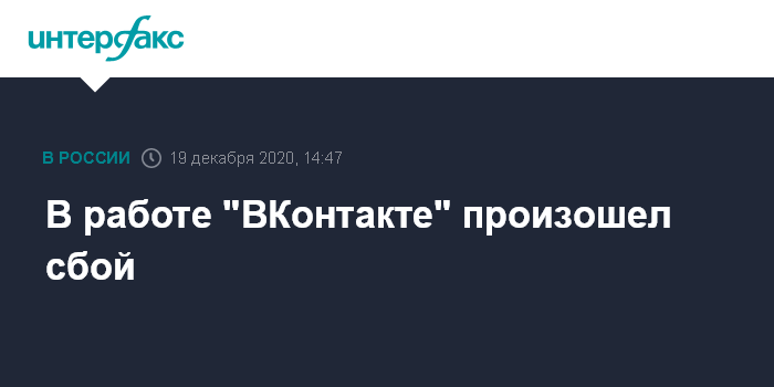 Москва. 19 декабря. INTERFAX.RU - В работе соцсети "ВКонтакте" произошел сбой, свидетельствуют данные Downdetector.