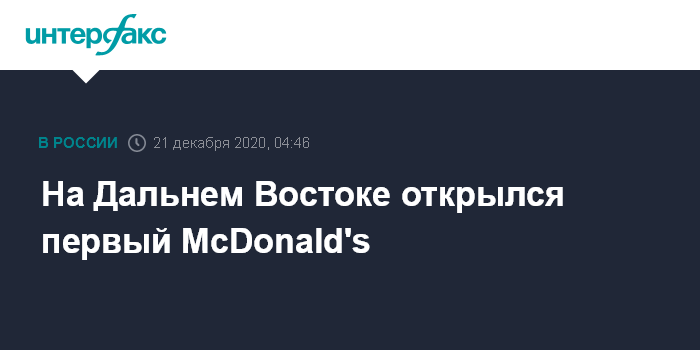 На Дальнем Востоке открылся первый McDonald's