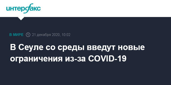 Москва. 21 декабря. INTERFAX.RU - Власти Сеульского столичного региона, где уже действуют меры безопасности в целях борьбы с COVID-19, распорядились со среды, 23 декабря, запретить людям собираться компаниями больше пяти человек, сообщает агентство "Ренхап".