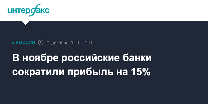 В ноябре российские банки сократили прибыль на 15%