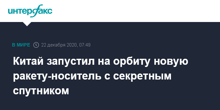 Москва. 22 декабря. INTERFAX.RU - Китайская ракета среднего класса "Чанчжэн-8" ("Великий поход-8", CZ-8) во вторник стартовала на орбиту с секретным спутником XJY-7 и группой космических микроаппаратов, прямая трансляция велась на китайском сайте DouYu.