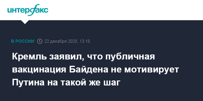 Кремль заявил, что публичная вакцинация Байдена не мотивирует Путина на такой же шаг