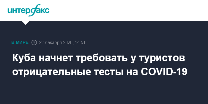 В распоряжении "Интерфакса" также есть протокол министерства здравоохранения страны от 20 декабря, где сообщается о скором введении тестов для туристов, которые нужно сделать до прибытия на Кубу.