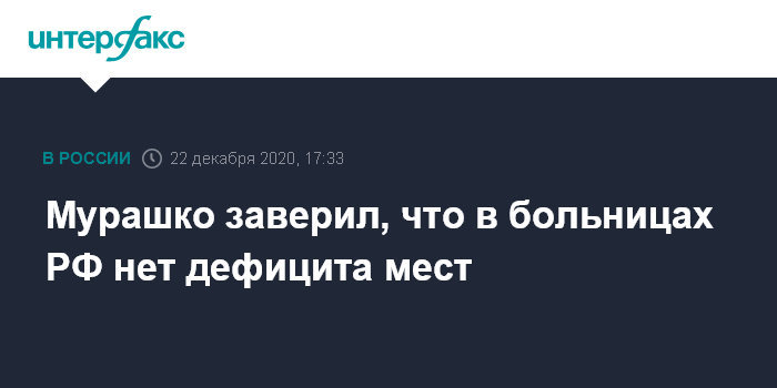 Москва. 22 декабря. INTERFAX.RU - Более 1,1 млн человек в России болеют коронавирусом в настоящий момент, только пятая часть из них находится в больницах. При этом ни в одном регионе нет дефицита коек, заявил министр здравоохранения Михаил Мурашко.