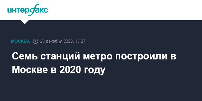 Москва. 23 декабря. INTERFAX.RU - Почти 18 км линий и семь станций метро было построено в Москве в 2020 году, сообщил в среду заммэра Москвы по вопросам градостроительной политики и строительства Андрей Бочкарев.