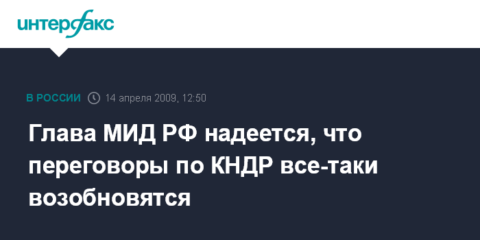 Москва. 14 апреля. INTERFAX.RU - Глава МИД РФ Сергей Лавров выразил надежду на возобновление в ближайшее время шестисторонних переговоров по ядерной проблеме КНДР, несмотря на эмоции их участников.
