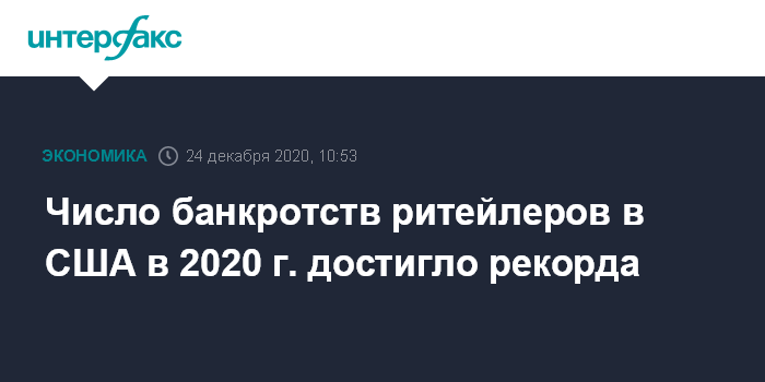 Число банкротств ритейлеров в США в 2020 г. достигло рекорда