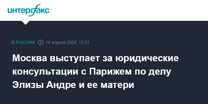 Москва выступает за юридические консультации с Парижем по делу Элизы Андре и ее матери