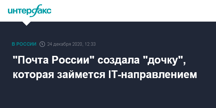 Москва. 24 декабря. INTERFAX.RU - ООО "Почтовые финансы", IT-филиал "Почты России", учредило компанию "Почта Диджитал", следует из данных системы "СПАРК-Интерфакс".
