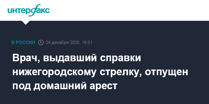 Врач, выдавший справки нижегородскому стрелку, отпущен под домашний арест