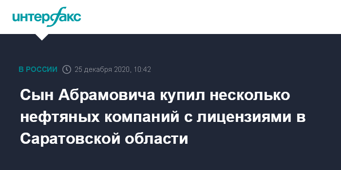 Сын Абрамовича купил несколько нефтяных компаний с лицензиями в Саратовской области